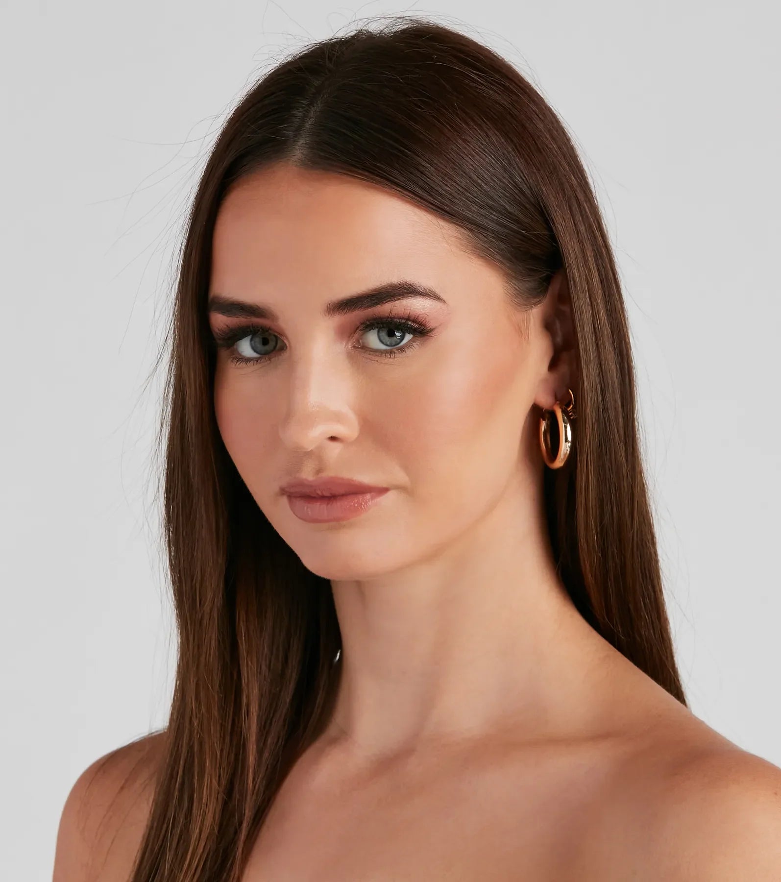 Love that minimalistic look? Add these glam huggie earrings to your daily lineup. They feature a set of three pairs two with rhinestone insets and post-back closure and one large solid hoop with omega-back closure. Complete the look in a chic casual dress with a blazer.