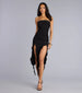 Drama in the best way. This tube midi dress hugs your curves with side ruching and turns up the volume with ruffled high slits made for showing off a little leg.