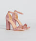 Capture sparkle in these block heels perfect for a night out or a dressy event! Featuring a sleek square toe, a platform sole that elevates the style, a block heel, a luxe fit cushioned insole for comfort, and a closed ankle with an adjustable strap with buckle closure. Complete the look with earrings.