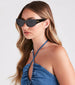 Make every day a casual-chic affair with these sleek sunglasses! They feature a geometric cat-eye shape with a plastic frame, gold bar accents on the sides, and tinted lenses. Style with a mini handbag.