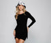 Have a stylish casual-chic moment in this ribbed knit mini dress. It features a crew neckline, long fitted sleeves, a trendy wrap tie-front design, and a short, form-hugging silhouette. Complete the look with heeled booties.