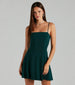 Breeze in looking casual and flirty in this short dress at parties and date nights! It features a sleeveless square neck, spaghetti straps, and a flattering A-line silhouette on smooth knit fabric. Complete the look in a necklace and earrings set.