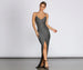 Wrap yourself with dazzling shine as you captivate them all in our Cathy dress! She features a sleeveless wrap V-neckline, spaghetti straps, ruching, a high off-center slit that shows off plenty of leg, and a wrap silhouette that embraces curves. The dress is composed of a glitter lurex fabric that offers a form hugging fit with a moderate stretch. Complete look with chrome heels.