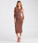 A midi dress you wouldn't mind being spotted in! The dress features a sleeveless crew neck, a bodycon silhouette, and a fitted midi-length hem on stretchy rib knit fabric. Complete the look in a sleek layered necklace for lunch with friends!