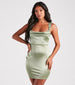 Keep the attention on you in this sleek satin-knit mini dress! Featuring a sleeveless cowl neckline, knot-detailed shoulder straps, and a short, curve-hugging silhouette, this bodycon dress was made for a night out. Style with strappy stilettos and an envelope clutch.