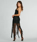 Romance and cherish yourself in this lace midi dress to give off plenty of alluring vibes! The midi-length dress features a strapless neckline with non-slip grip lining, a flattering bodycon silhouette, and an eye-catching sheer ruffled cutout hem. Complete the look with dangly earrings and heels for a date or party!