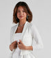 Elevate your look to a new level of chic with this cropped blazer. It features a lapel collar neckline, three-quarter-length fitted sleeves, and a cropped and fitted hem. Layer this crepe blazer over a bodysuit and pair it with a high-rise pencil skirt for the perf workwear attire.