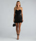 Chic and fab, this marabou feather trim mini skirt will showcase your curves and give off a flirty flair. It features a high-rise waist, a mini-length hem with a chic marabou feather trim, and a form-hugging silhouette. The smooth knit fabric offers plenty of stretch. Style with a corset top and mules for girl's night!