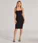 This bodycon midi dress features a sultry lower back cutout and back slit accent for a chic allure. The curve-hugging dress is made with a lined, soft, brushed knit fabric offering plenty of stretch for comfortable wear.