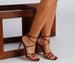 If you desire a chic pair of stiletto heels you're in the right place! They feature a square toe, stiletto heel, and a strappy design. Accessorize your look with a glittery clutch.