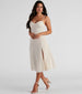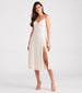 Get the perf semi-formal look in this effortlessly chic chiffon midi dress. It features a sleeveless sweetheart neckline with a padded bust, spaghetti straps, a flattering high waist seam, and a mid-length skirt with a front slit and a flowy A-line silhouette. Style this dress with sleek earrings and cute heels.