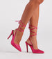 These chic glam stiletto heels will level up your night-out looks! They feature a closed pointed toe, an open back, a strappy lace-up design that wraps around the leg, and a sleek stiletto heel. The all-over mini rhinestone embellishments will give off the perfect sparkle. Style with rhinestone fringe earrings.