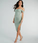 Show up looking oh-so-chic at your next wedding or party in this off-the-shoulder midi dress! Designed with an airy mesh fabric with a knit lining, this mid-length dress will gorgeously flaunt your figure along the bodycon silhouette. The off-the-shoulder sweetheart neckline with a padded bust shapes the bodice, and the thin tank straps can easily be worn on the shoulder. Ruched detailing is accented at the bust and down the body of the dress to accentuate your curves. The asymmetric mid-length hem creates an alluring high side slit to showcase some leg. Complete your best-dressed guest look with clear heels.