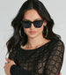 These sleek and chic square-frame sunglasses will be a staple for the season! A trendy take on a classic design, these shades feature a square shape with a subtle angle, tinted lenses, a plastic frame, and mini-studded accents on each side. Style with hoop earrings.