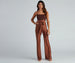 Bring the chic vibes with these fab high-rise pants. They feature a tie-front accent, wide pant legs, and a form-hugging fit. The pants are composed of a stretchy knit fabric with a pretty sheen. Style these pants with a crop top and clear mules.