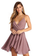 Go with the flow in a skater dress that is party-ready! The dress features a flattering wrap v-neckline, adjustable spaghetti straps for a customized fit, and a high waist fit that leads to a flowy layered skater skirt that beautifully cascades silhouette. Complete your brunch-ready look with a dainty necklace and clear heels.