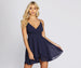 Navy Dress: Model is 5'8' with a 34' bust, 25' waist and 34' hips. She is wearing a size small.