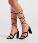 These classic and chic lace-up block heels are a closet staple for all of your formal events! They feature an open square toe with a strap, an asymmetric strap across the foot, a thin, strappy, lace-up design that wraps around the leg, and a block heel. Style with an envelope clutch.