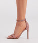 Classy and chic, you'll be wearing these stiletto heels on repeat! They feature a square toe, thin toe strap, ankle buckle closure, and a sleek design on faux suede material. Complete the look in a chic jumpsuit for a day or night occasion.