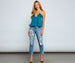 Wrap yourself with a luxe blouse that shows off your affinity for the good life! The blouse features a sleeveless V-neckline, rhinestone straps, rhinestone lace-up front, and a cropped hem. The blouse is composed of a satin-like fabric that offers a relaxed fit with minimal stretch. Complete look with high waist jeans.