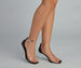 It's clear as day that these lucite heels belong in your lineup. It features a square toe design, PVC toe and ankle strap, and block heels. Style with a glittery dress and gold hoops.