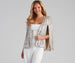 In this sequin knit cape, you'll be getting a standing ovation! It features shoulder pads for a structured fit and an open with slits along the relaxed fit hem. Complete your party look with a chic bodysuit and hoops.