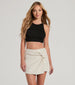 Bring a little cute edge to your look in this faux leather mini skort perfect for concerts or going out! The high-rise waist and pleated knot accent create a unique and flattering silhouette. The form-hugging fit and front skirt overlay add a trendy touch, while the mini-length hem and shorts lining ensure style and comfort. Complete the look with a graphic top and booties.