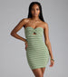 Show off your cutie style in this adorable mini dress made with striped ribbed knit fabric with high stretch. The strapless sweetheart neckline features a knot detail at the bust and a small keyhole cutout for a trendy detail.
