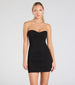 Dare to be divining in this classic little black dress for a night on the town! The dress features a sultry sweetheart strapless neckline and a flattering bodycon silhouette. Complete the look with earrings and platform heels.