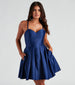 Bring the luxe to your event with a formal party dress that dazzles from the moment you enter the room! The dress features a sleeveless sweetheart neckline, padded cups, flexible boning for structure, spaghetti straps that cross at the back, and a pleated party-length skirt accented with a voluminous petticoat. The dress is composed of a satin fabric that offers a fit and flare silhouette with minimal stretch. Complete look with rhinestone heels.