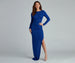 Create a head-turning formal look in the illuminating Denise glitter knit dress. She features a high crew neckline, long fitted sleeves, an asymmetrical back cutout, ruching down one side leading to a thigh-high slit, and a floor-length, fitted silhouette. Style this dress with sparkling rhinestone earrings and heels.