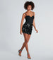 Dance the night away in this statement sequin mini skirt at the disco! The fabulous skirt features a flattering high-rise waist, a form-hugging silhouette, and a mini-length hem with sequin embellishments on mesh fabric and a sewn-in knit lining. Complete the look in a going-out top and strappy heels!