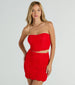 Make everyone do a double-take when you're in this strapless crop top out for the night! The top is designed with a ruched cropped bodice accentuating and showing off your figure while the strappy back detail flaunts your style. Complete the look with the matching skirt.