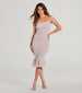 Have the dreamiest summer romance in this floral chiffon midi dress perfect for dates and parties! This dress features a square neckline, adjustable spaghetti straps, and a stretchy smocked bodycon silhouette for a comfortable and flattering fit. The tiered ruffled midi-length hem adds a touch of femininity, while the floral print on chiffon fabric gives the prettiest look. Style this floral dress with earrings and block heels.