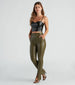 Some days you want an edgy-chic vibe and these PU high-rise pants are it! They feature a front button and hidden zipper closure, belt loops, side pockets, and a skinny-leg design with front slit hems. Complete the look in a corset top for a music concert!