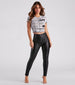 Showcase a sleek edgy style in these of-the-moment faux leather pants! They feature a high-rise fit, a corset-designed waist with front seam detailing to give the illusion of boning, a front zipper closure, skinny pant legs, and a form-hugging fit. The coated faux leather fabric offers a minimal stretch for comfortable wear. Complete the look with a cropped blouse and strappy heels.