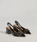 Pull off an edgy-glam allure in these patent leather slingback buckle pumps perfect for styling with a crossbody purse.