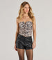 Turn heads in the edgy icon snake print strapless crop top. With a V-cut neckline, ruched details, and a fitted hem, it's your go-to for fierce vibes.