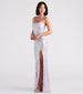 Enchant in the Edlyn sequin formal prom dress to make a glamorous entrance at your next elegant affair or prom! She features adjustable spaghetti straps that shape her lace-up back that will have every head turn. Plus, she offers built-in bust support so no bra is needed. The fitted empire waist gently flows into a floor-length mermaid silhouette with a sultry side slit. She's composed of a sequin embroidered mesh-lined fabric with a minimal stretch. Compliment your look in satin lace-up heels.