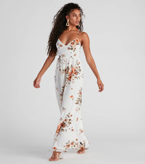 Showcase your effortless beauty in this stunning flowy floral maxi dress! It features a sleeveless V-neckline, spaghetti straps that lead to a lace-up back design, a fitted high waist, and a floor-length silhouette with a relaxed fit. The lined chiffon fabric features an all-over floral print pattern. Style with your fave mules.