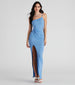 Summertime is all about showcasing that effortlessly chic style! This ribbed knit maxi dress features a sleeveless one-shoulder neckline with a single spaghetti strap, a fitted high waist seam with a knot twist design, and a curve-hugging maxi-length silhouette with a trendy high slit. Complete the look with strappy mules.