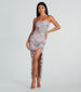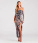Effortlessly ethereal will be your vibe in this gorgeous floral mesh maxi dress! It features a strapless straight-across neckline, a form-hugging fit at the bodice and waist, a flowy maxi-length hem, a thigh-high front slit with ruffled detailing for a chic accent, and a slim-fit silhouette. The lined sheer mesh fabric features an all-over intricate floral print pattern. Style with duster earrings and clear heels for a stunning wedding guest look!
