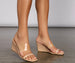 Elevate your style game with wedges that are totally fab and chic! The wedges feature an open back, a clear PVC strap, an open almond toe with a strap over the toe, and a faux leather wedge heel. Complete look with a ruffled midi dress and a shoulder bag.
