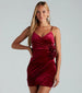Elevate the romance on your next dinner date in this rosette velvet mini dress! It features a sleeveless V-neckline with a surplice design, spaghetti straps, a high waist seam with dual chic rosette appliques, a mini-length hem with a wrap-front design, and a bodycon silhouette. The smooth velvet fabric has a moderate stretch. Complete your look with a sleek clutch and strappy stilettos.