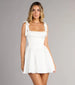 There's so much to adore about the Elida satin short dress with the prettiest details to make every occasion cuter! the dress boasts a flirty lace-up back, corset bodice to snatch your waist, and a flattering skater silhouette.