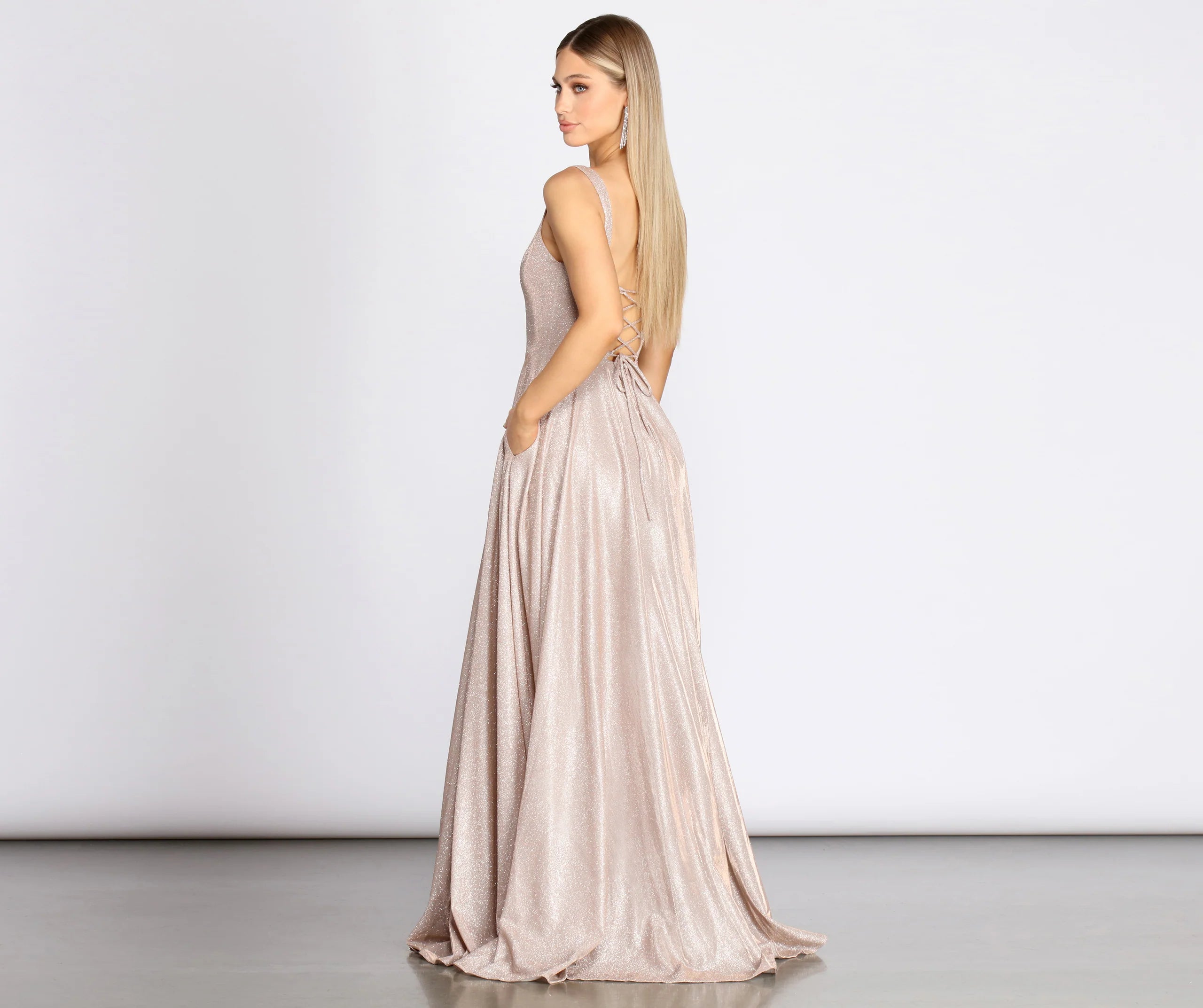 Create a moment that will take their breath away from the time you enter the room in our unforgettable Emery formal glitter dress! Pair with dainty accessories to elevate your evening!