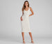 The perfect sleeveless midi sweater dress for every occasion! It features a V-neck, tank straps, and a bodycon silhouette on ribbed knit fabric with a moderate stretch. Complete the look in sleek hoops and heels.