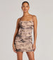 This sleeveless abstract mini dress features stunning lace-up back and side ruched seams that accentuate your curves along the bodycon silhouette. Perfect for a night out or a party.