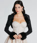 This bolero is the perfect piece for a sophisticated, exclusive look! Designed on smooth rib knit fabric, this is a fashion staple you'll adore featuring fitted long sleeves with plush faux fur cuffs and collar neckline, an open front design, and an ultra-cropped hem. Complete the look with a glitter clutch for a holiday party or black tie soiree!