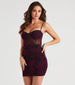 Unveil exquisite elegance in this velvet mesh dress sure to make a divine option to wear for a dinner party! The dress features a sleeveless sweetheart neck, adjustable spaghetti straps, a padded bust, and a satin pipe trim bodice that leads to the bodycon, short-length hem. Complete the look in stiletto pumps.